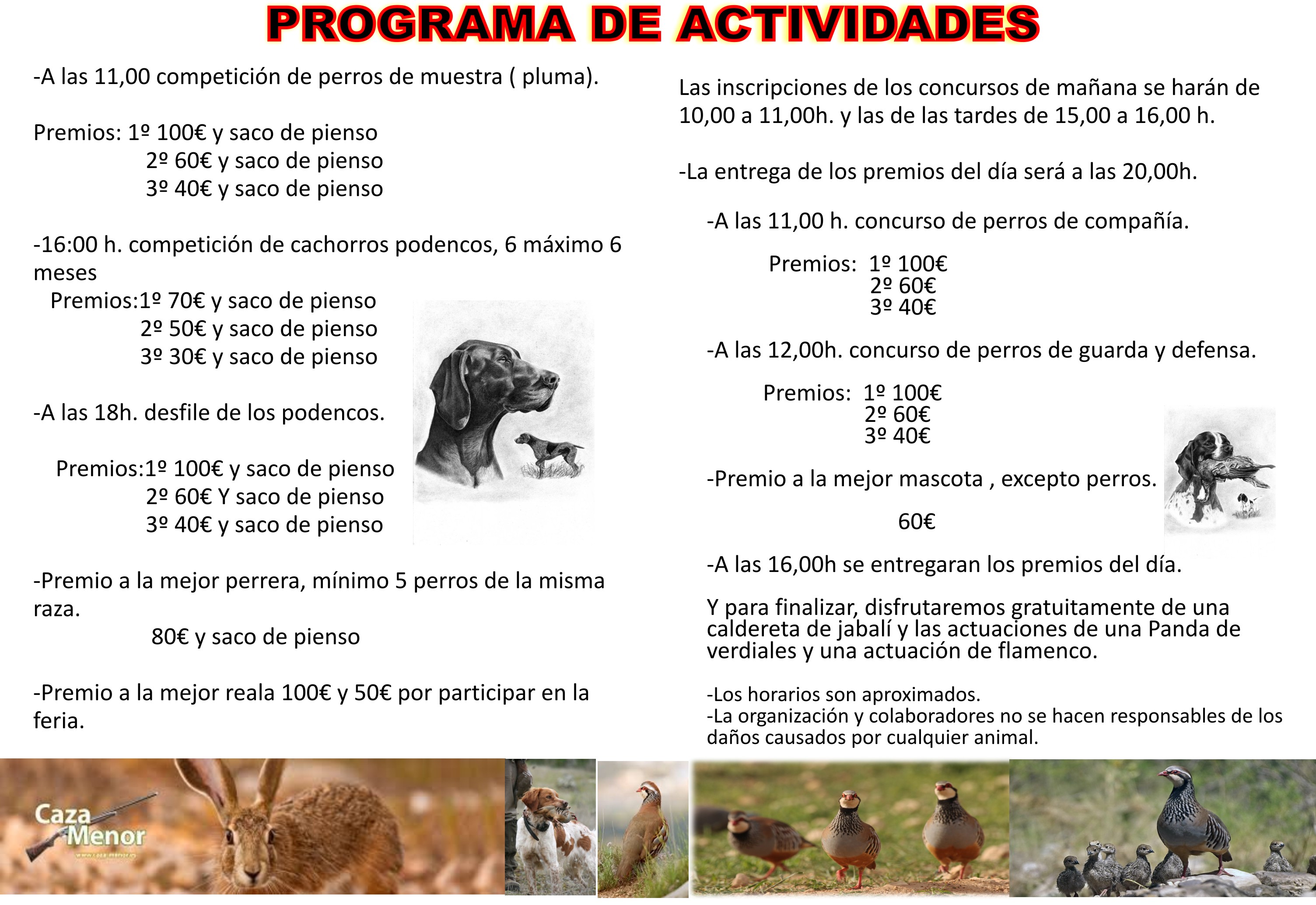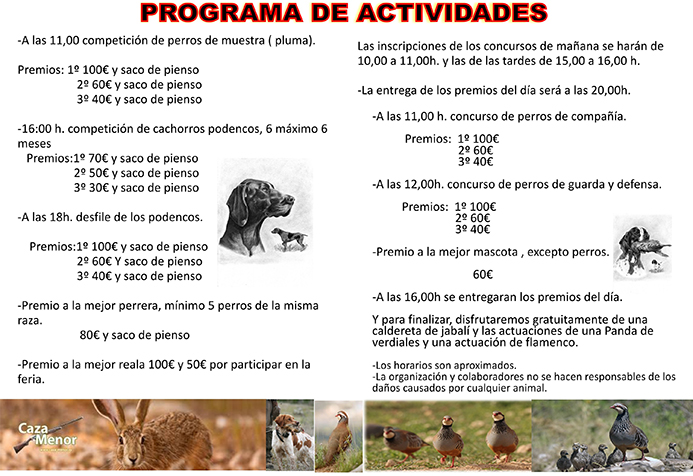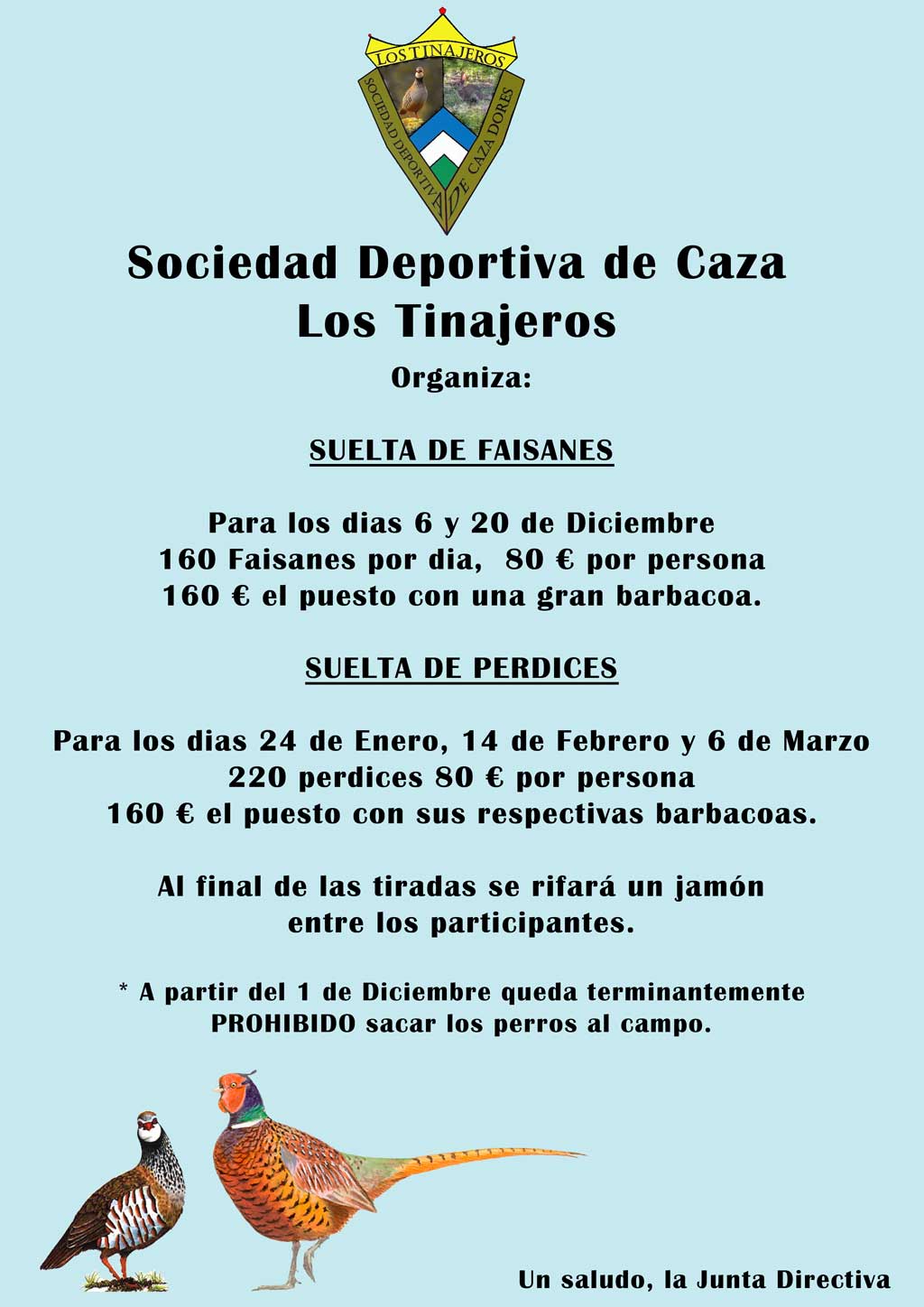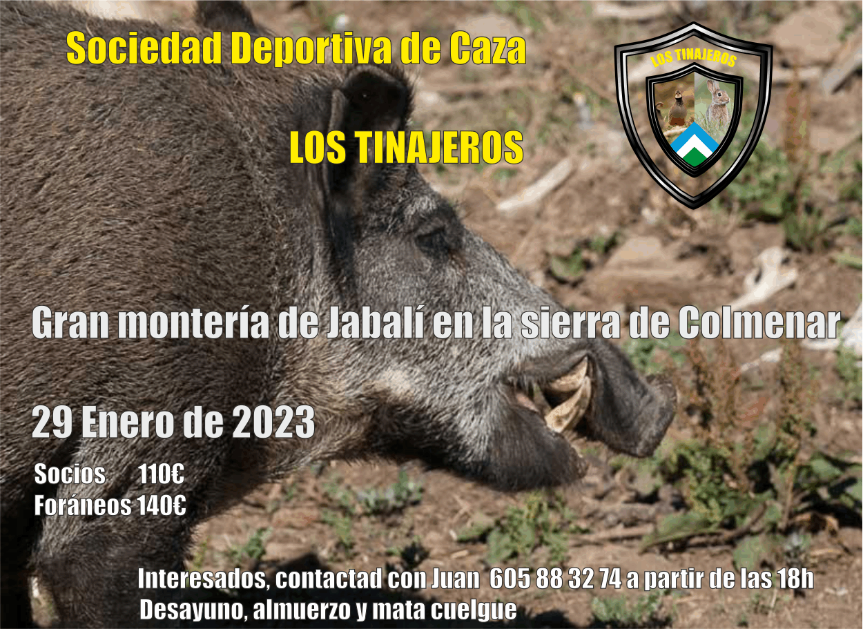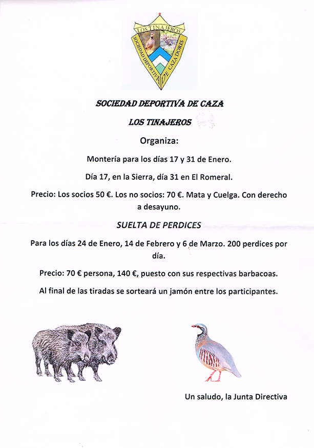 Monterías con desayuno y almuerzo precio 70€ Socios, 80€ no socios