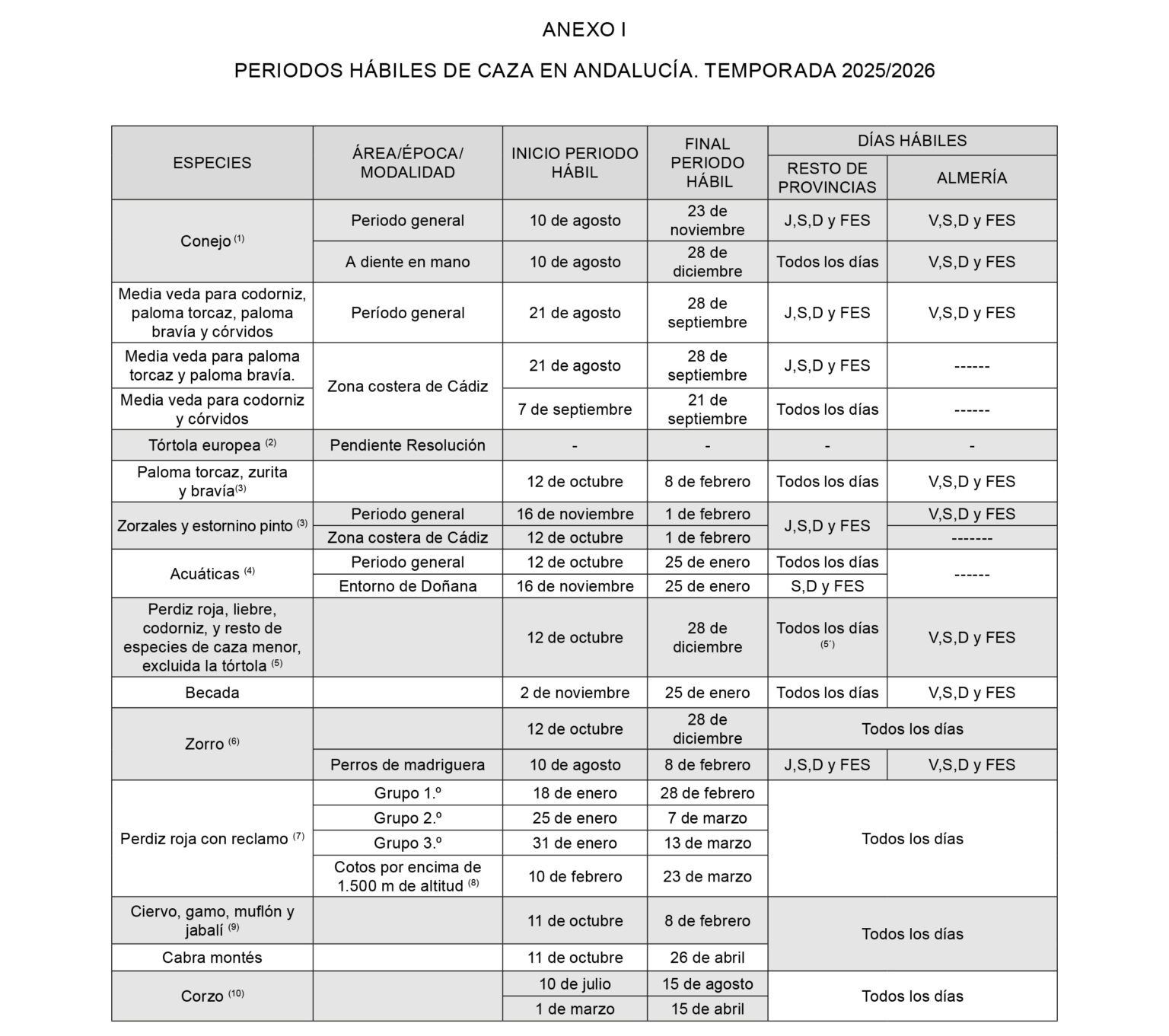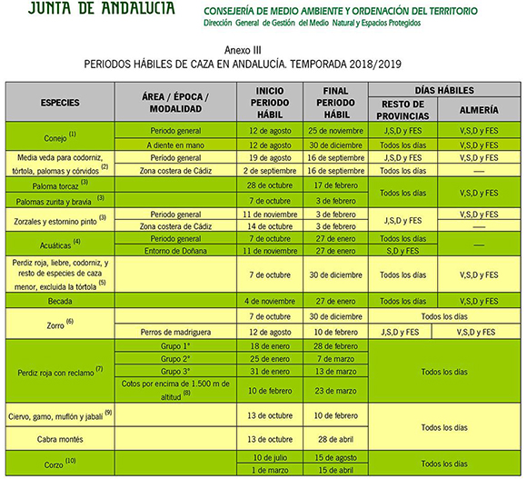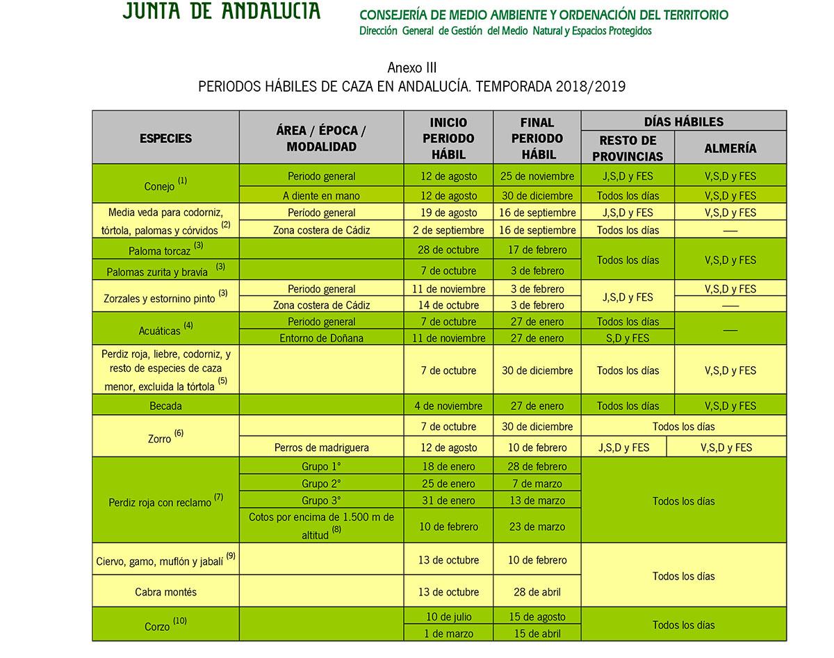 Orden de Vedas 2018/19